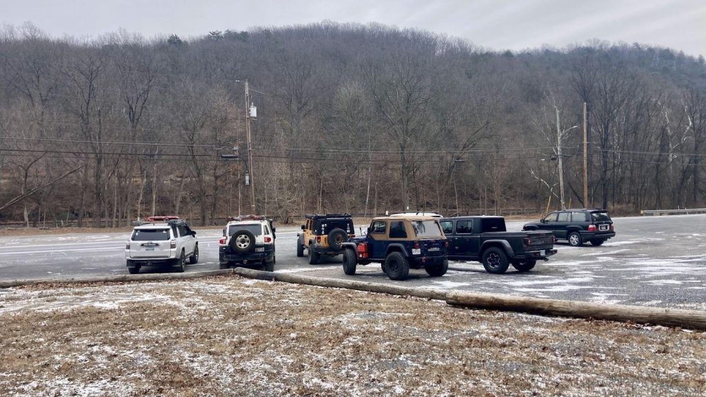 We met at the north end of Ridge Road to let some air out of the tires and hold our driver’s meeting.