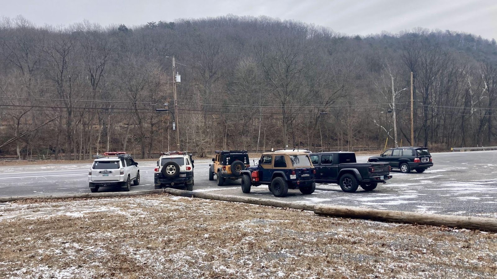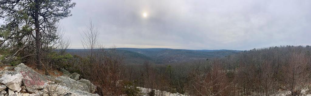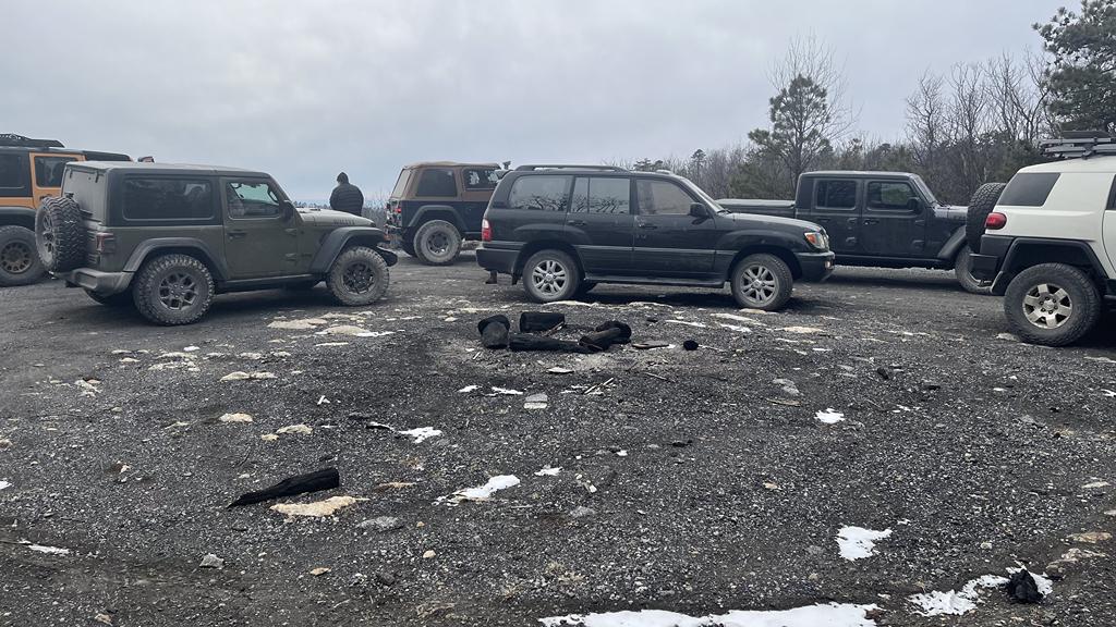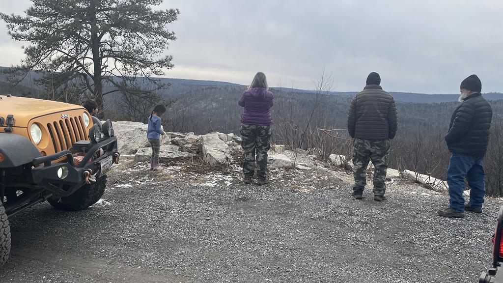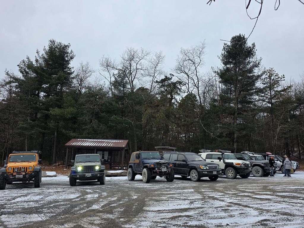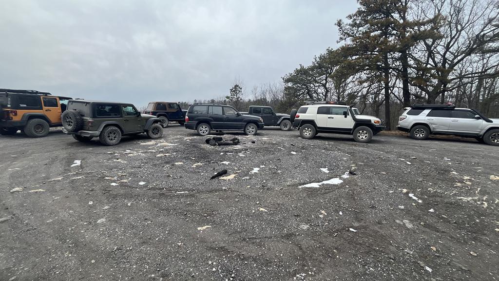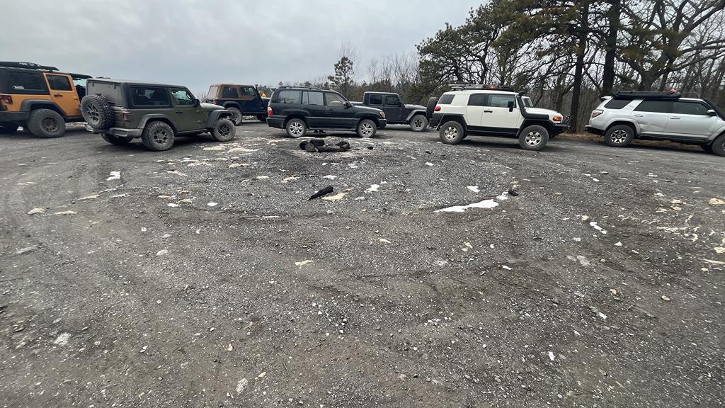 We hit the trail expecting a rutted climb up the mountain based on past trail rides.  We were a little disappointed to discover that the road had been graded and offered very little challenge.  With the leaves off the trees we were able to enjoy the views of the valley below as we drove along the ridge.  After a loop through the north part of the forest we stopped at the Big Flat ATV Parking Lot for lunch and a bathroom break.