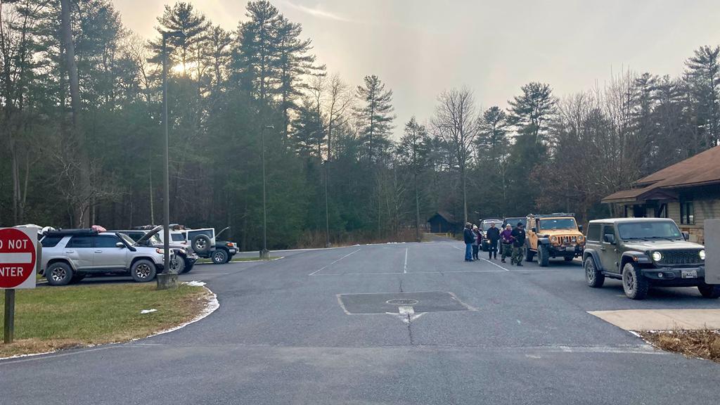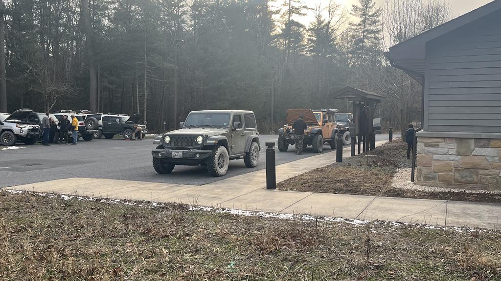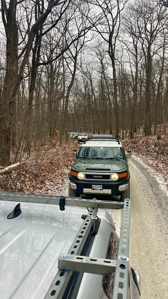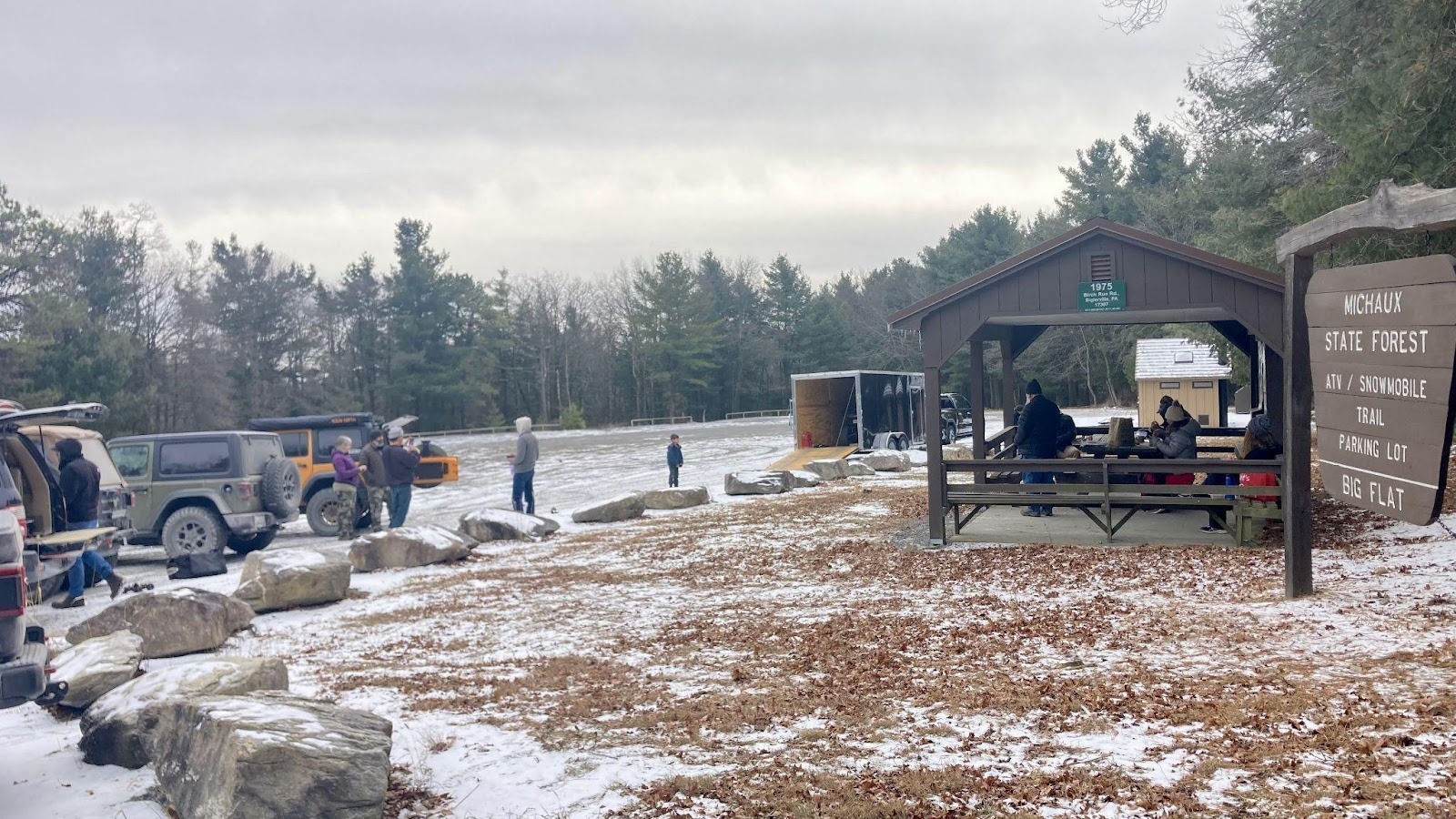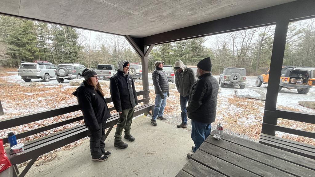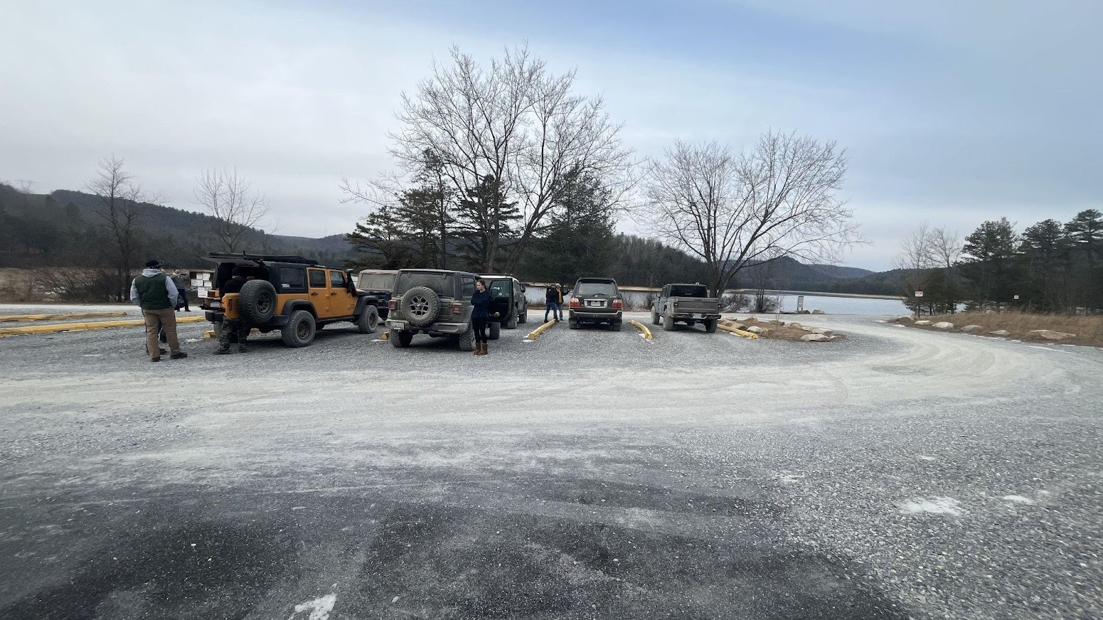 We hit the trail expecting a rutted climb up the mountain based on past trail rides.  We were a little disappointed to discover that the road had been graded and offered very little challenge.  With the leaves off the trees we were able to enjoy the views of the valley below as we drove along the ridge.  After a loop through the north part of the forest we stopped at the Big Flat ATV Parking Lot for lunch and a bathroom break.
