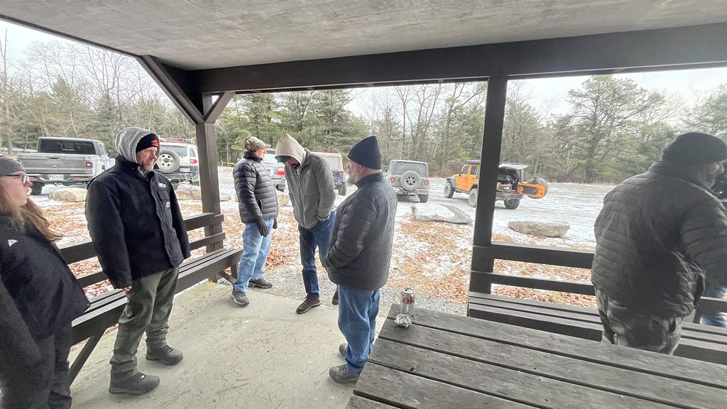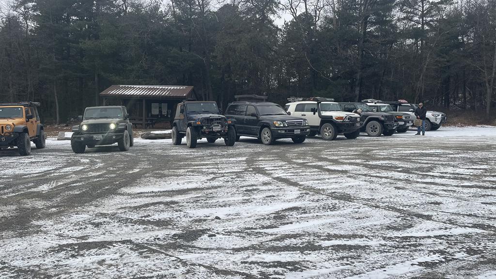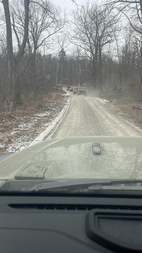 We met at the north end of Ridge Road to let some air out of the tires and hold our driver’s meeting.