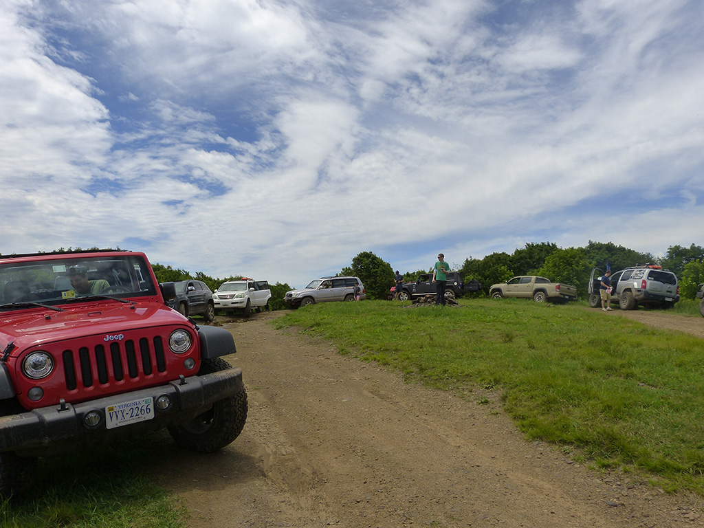 A few of us decided a breakfast of champions with a fitting view of mountains was a good place to meet and start the day. A Denny’s in Strasburg fit the bill. Fed and happy, we hit the road to join with everyone else at the Sheetz in Harrisonburg. We arrived to quite a crowd of eager off roaders. We got our lunches to go and our rigs gassed up. A quick meeting got all the drivers in sync with our route plan and details of our adventure. We would head down US-33 to Skidmore Fork Rd and take that all the way to the top. After lunch on the knob, we’d head back down via Union Springs Rd.