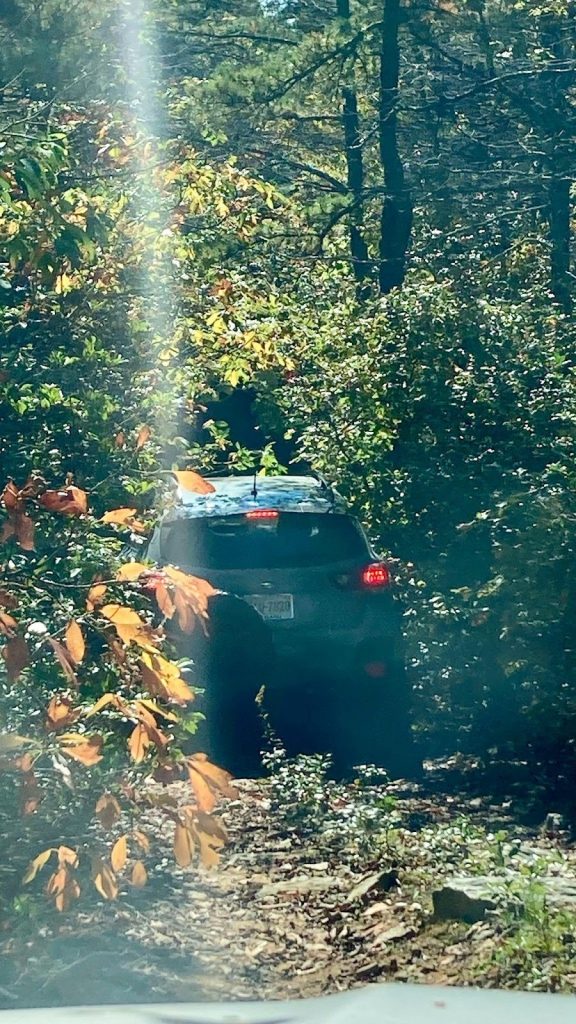 Almost 4 miles in we came to the first of two major dead end roads that lead off the main trail. The first, 162A, leads off the right and appears to summit a mountain. We were greeted with a severely overgrown trail that managed to pinstripe even Jesse’s smaller Crosstrek! The trail never reached a noticeable summit or appeared to lead much of anywhere except maybe a hiking/biking trail.