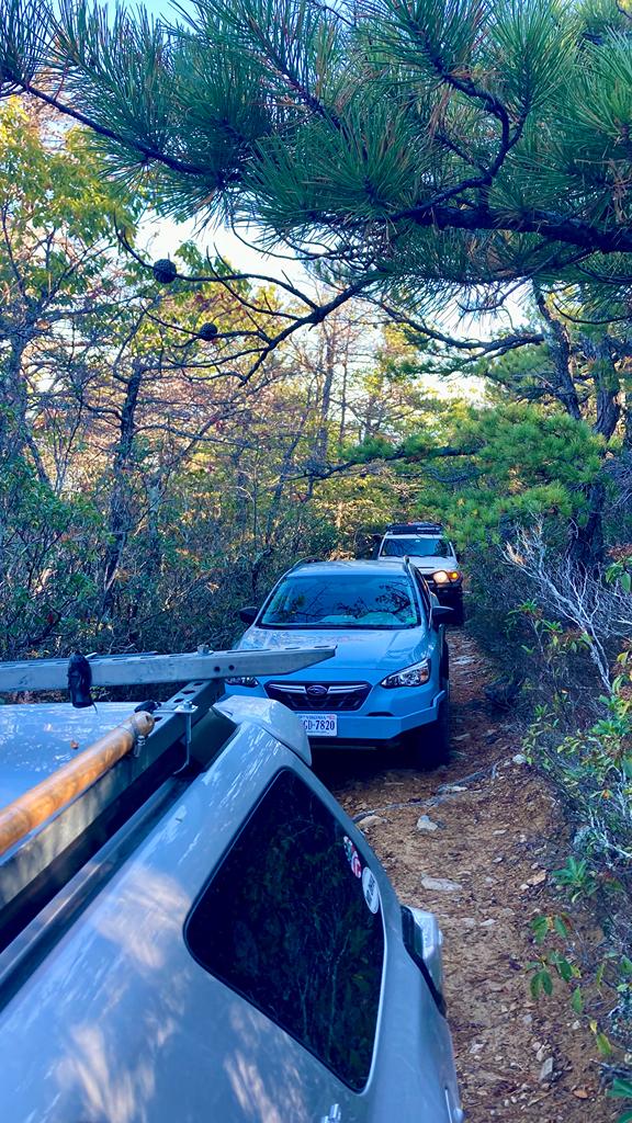 Almost 4 miles in we came to the first of two major dead end roads that lead off the main trail. The first, 162A, leads off the right and appears to summit a mountain. We were greeted with a severely overgrown trail that managed to pinstripe even Jesse’s smaller Crosstrek! The trail never reached a noticeable summit or appeared to lead much of anywhere except maybe a hiking/biking trail.
