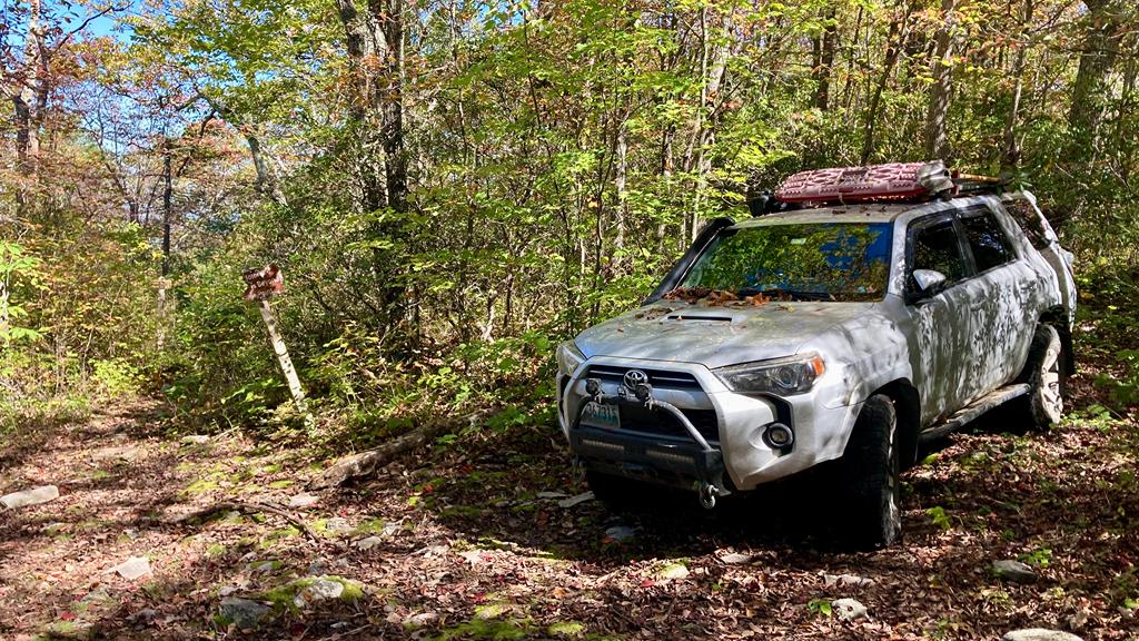 On the club’s recent trip to Big Levels we noticed several marked side trails that the club had either never explored or hadn’t explored in a while. For a full description of the main trail see the trail report from June 2025. When a free weekend popped up in October, a small group of explorers set out into the unknown!