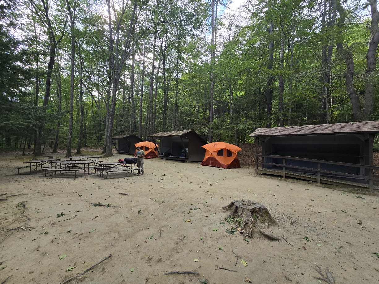 Most of us arrived on Thursday evening at Wilgus State Park, a Vermont state park right on the Connecticut River. We had reserved a group campsite, which was slightly disappointing. The description of the campsite and park map make it look like the group site is immediately next to a parking area, but it was actually a little bit of a walk between the two. The campsite was also right along a busy road, and plenty of strangers walked right through our campsite on their way down to the river. After that negative note, I did want to mention that all of the staff and volunteers were super friendly, and they did an amazing job in keeping everything clean.