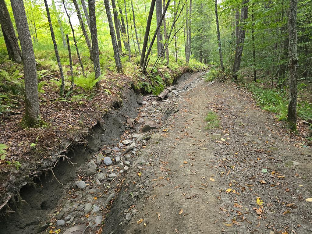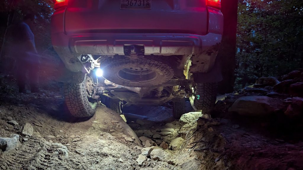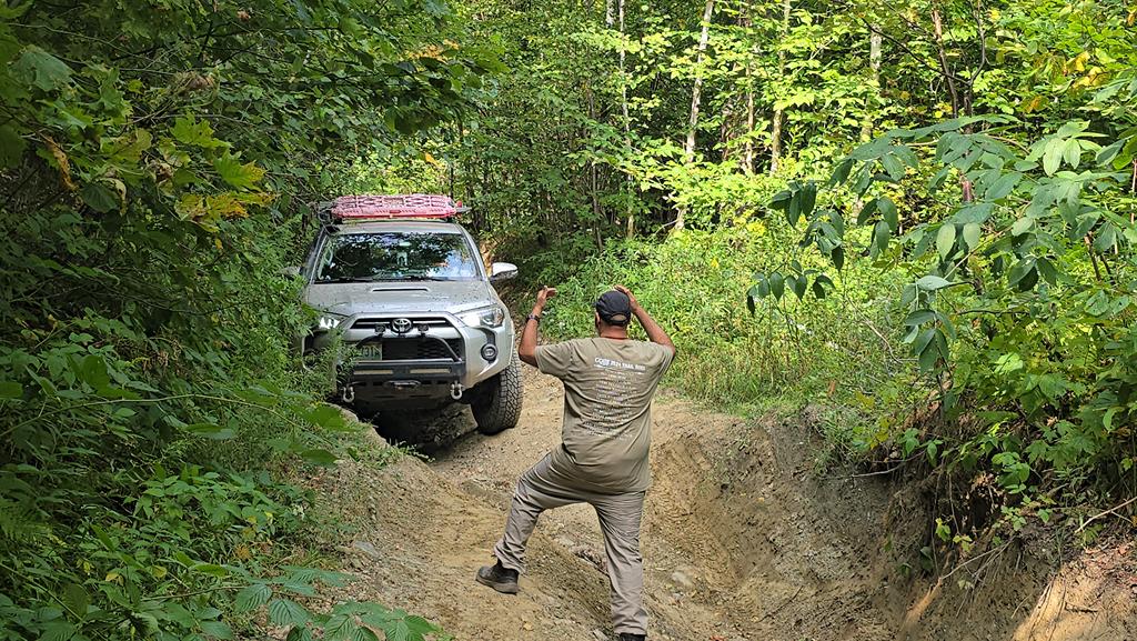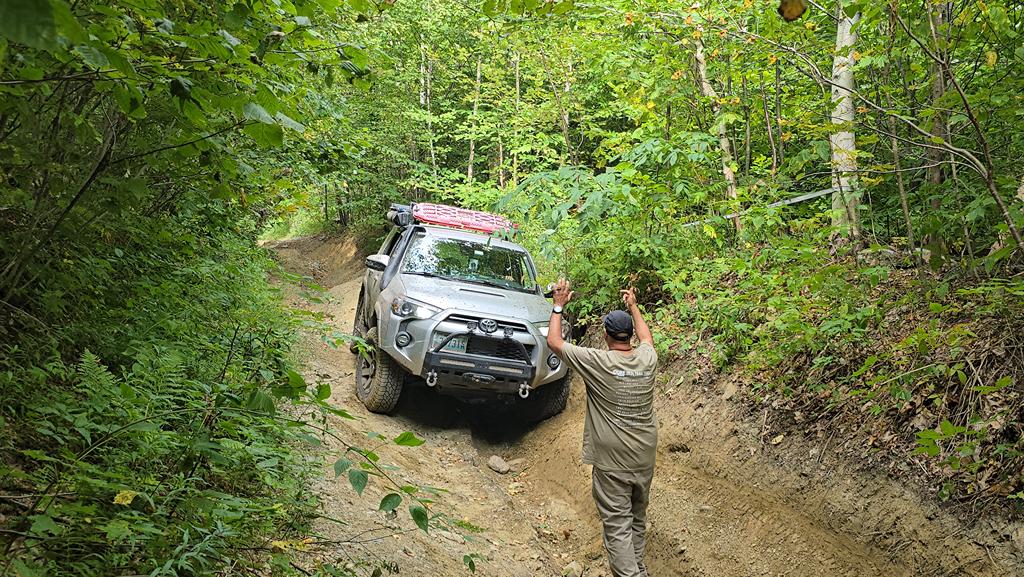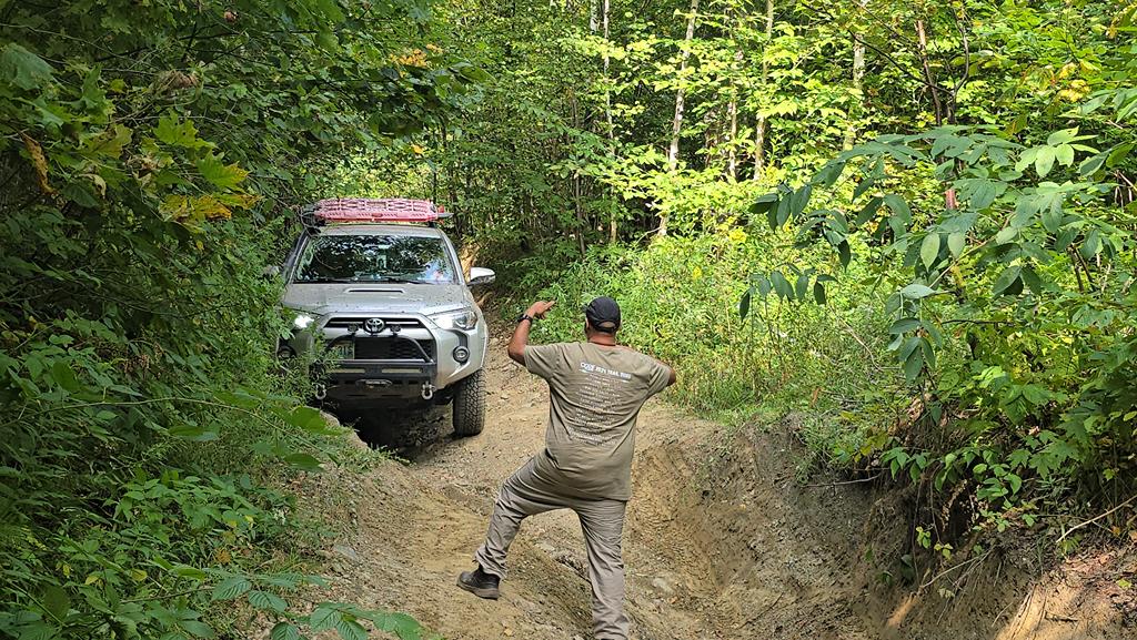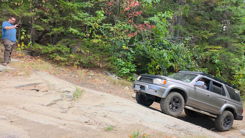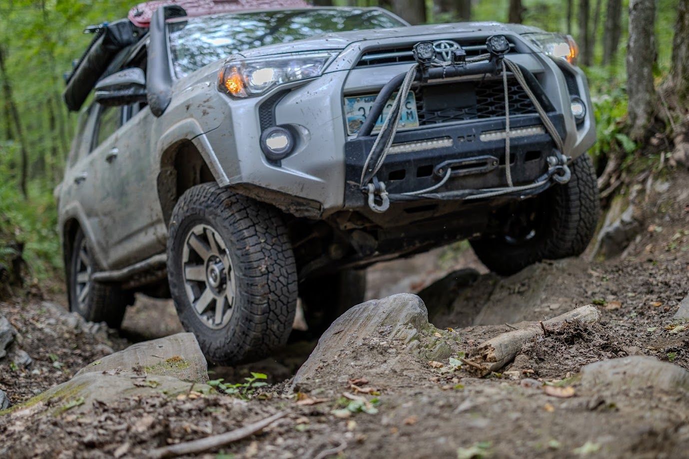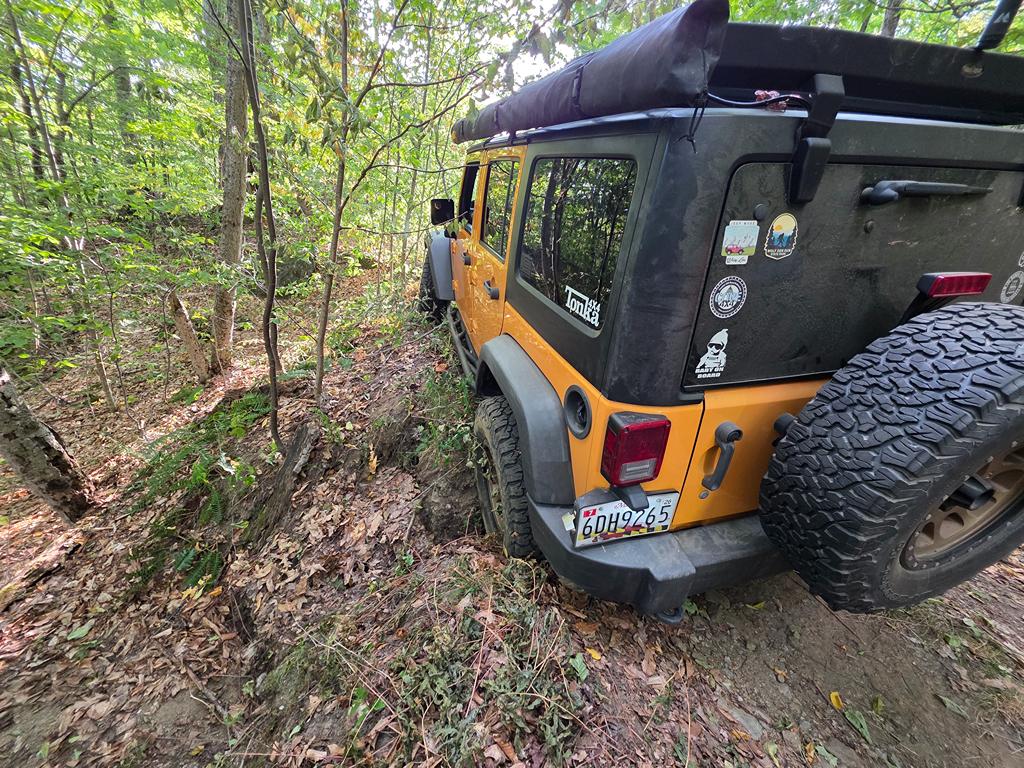 We continued on slowly conquering difficult obstacles until we reached the final obstacle of the trail, which was simply impassable in our vehicles (and seemingly any other street vehicle). We did not get any pictures or video of this obstacle, but it was a pair of large boulders on either side of a tight curvy ditch – the best line we saw would require the vehicle to be off camber enough to rub one of the boulders if not just rollover. Once home, we found a few videos of this trail (the newest one being from almost a year prior) and this obstacle didn’t appear to be quite as difficult. Vermont has had some hard rains and flooding this summer, which I believe washed this obstacle out making it as difficult as we saw it.