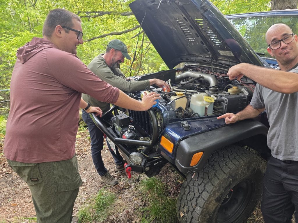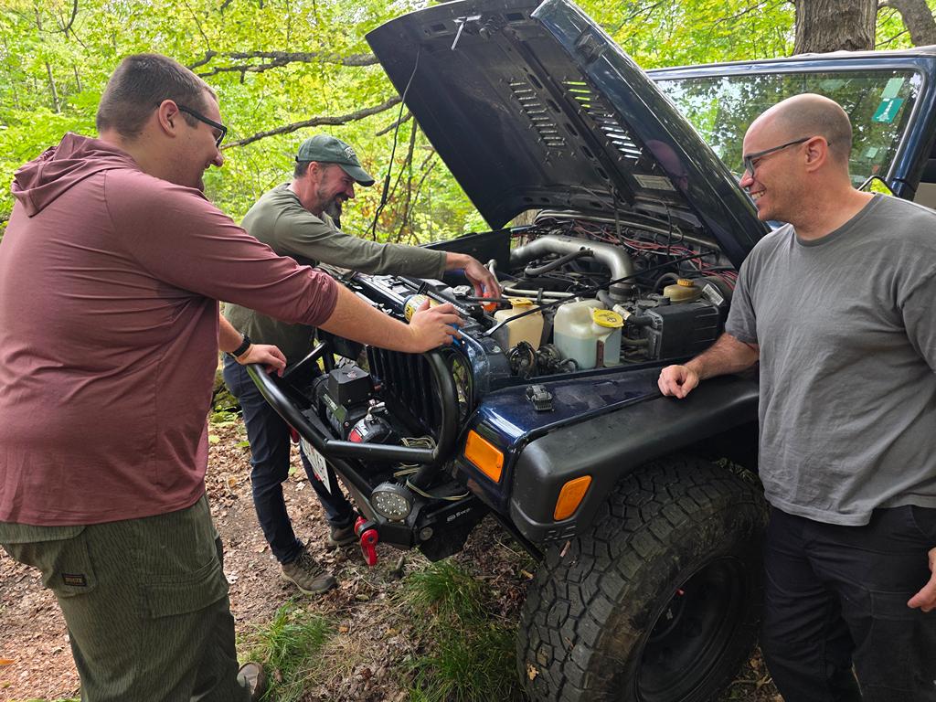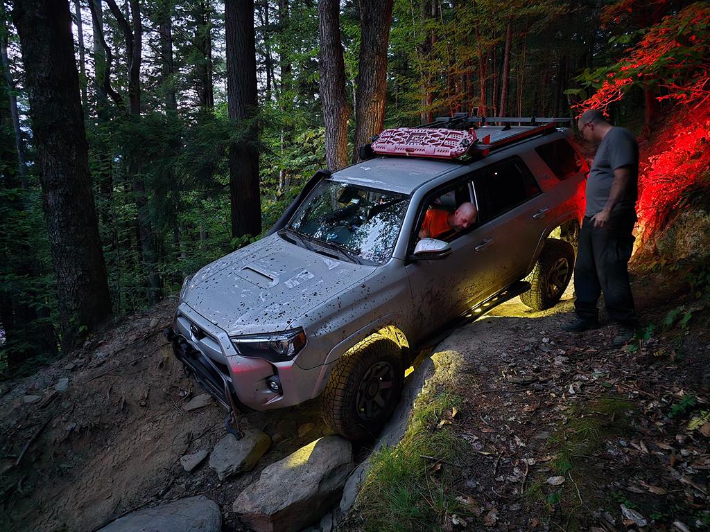 So we turned around and went back through the trail, uphill this time and in the rain. The wet rocks had zero traction, making for some interesting climbs! Ben’s 4Runner required a winch in a few spots to get him up the rock ledges. We were able to repair our disabled vehicle and headed to our planned lunch spot, Woodstock Farmers Market, at 5PM.