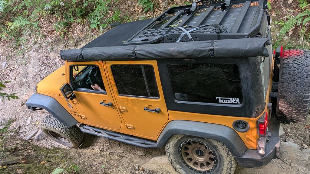 So we turned around and went back through the trail, uphill this time and in the rain. The wet rocks had zero traction, making for some interesting climbs! Ben’s 4Runner required a winch in a few spots to get him up the rock ledges. We were able to repair our disabled vehicle and headed to our planned lunch spot, Woodstock Farmers Market, at 5PM.