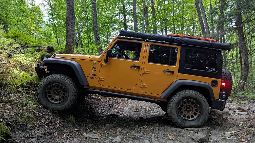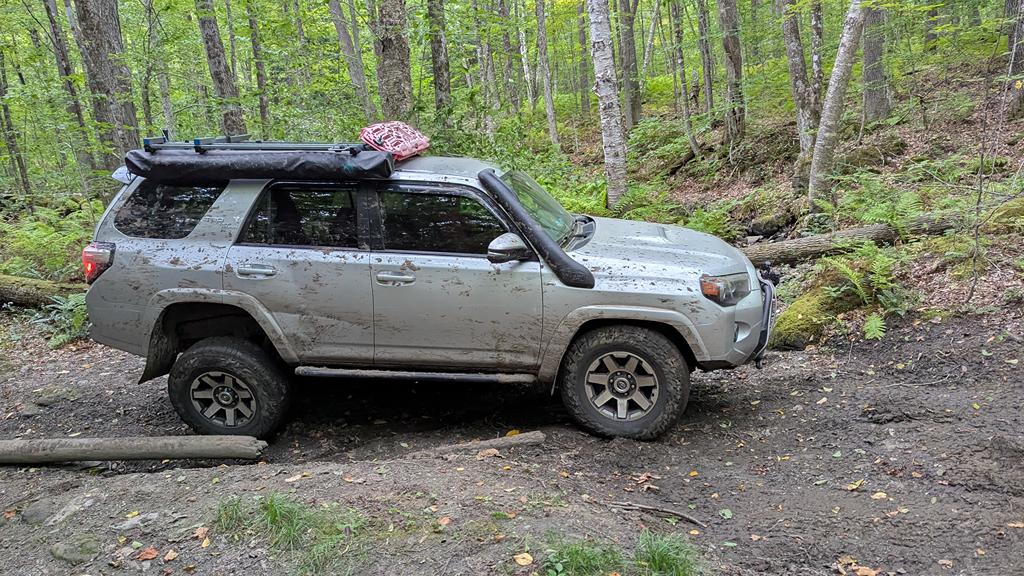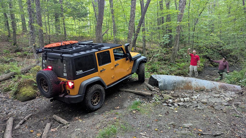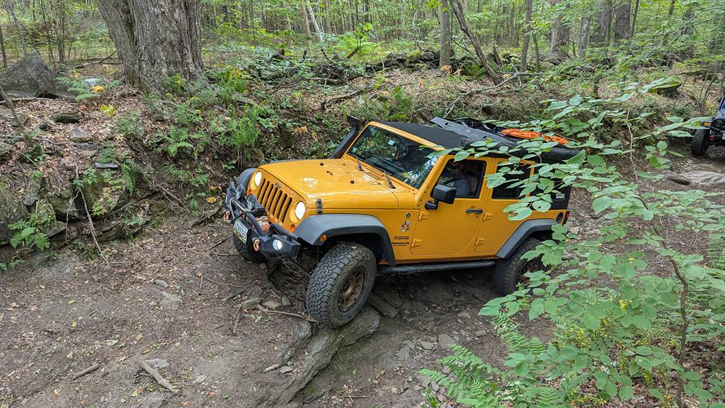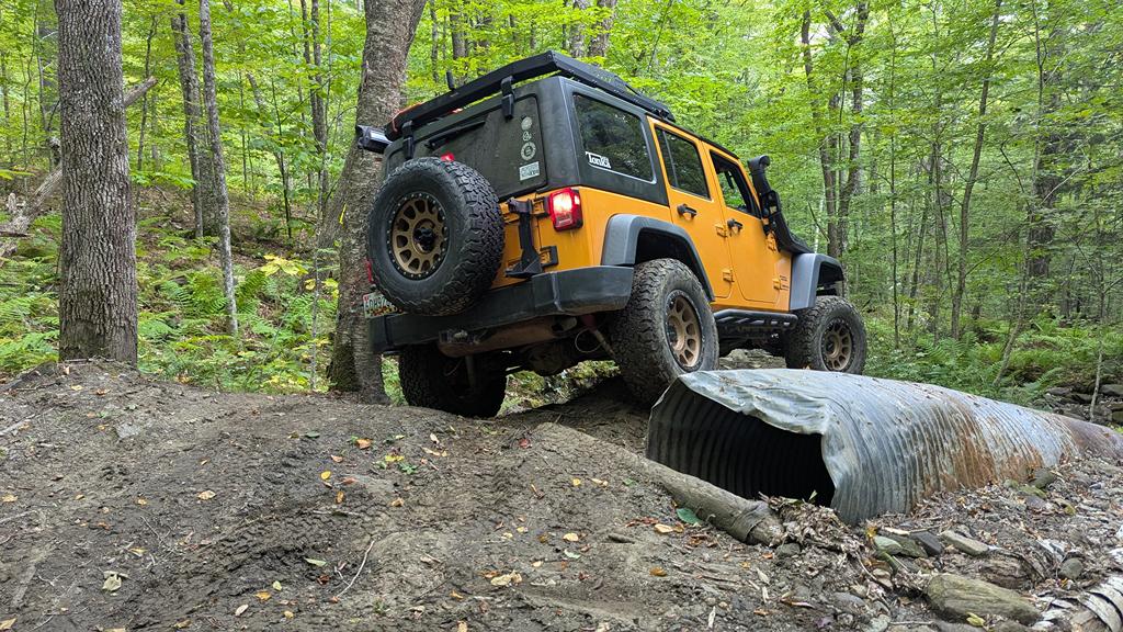 We continued on slowly conquering difficult obstacles until we reached the final obstacle of the trail, which was simply impassable in our vehicles (and seemingly any other street vehicle). We did not get any pictures or video of this obstacle, but it was a pair of large boulders on either side of a tight curvy ditch – the best line we saw would require the vehicle to be off camber enough to rub one of the boulders if not just rollover. Once home, we found a few videos of this trail (the newest one being from almost a year prior) and this obstacle didn’t appear to be quite as difficult. Vermont has had some hard rains and flooding this summer, which I believe washed this obstacle out making it as difficult as we saw it.